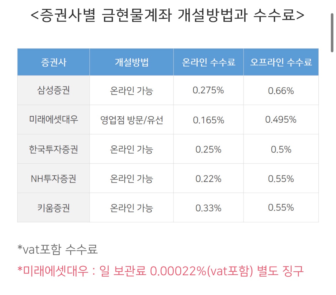 #KRX #증권사금투자 #신한은행 #골드리슈통장수수료 #미래에셋대우 #NH투자증권 #금현물계좌개설하기