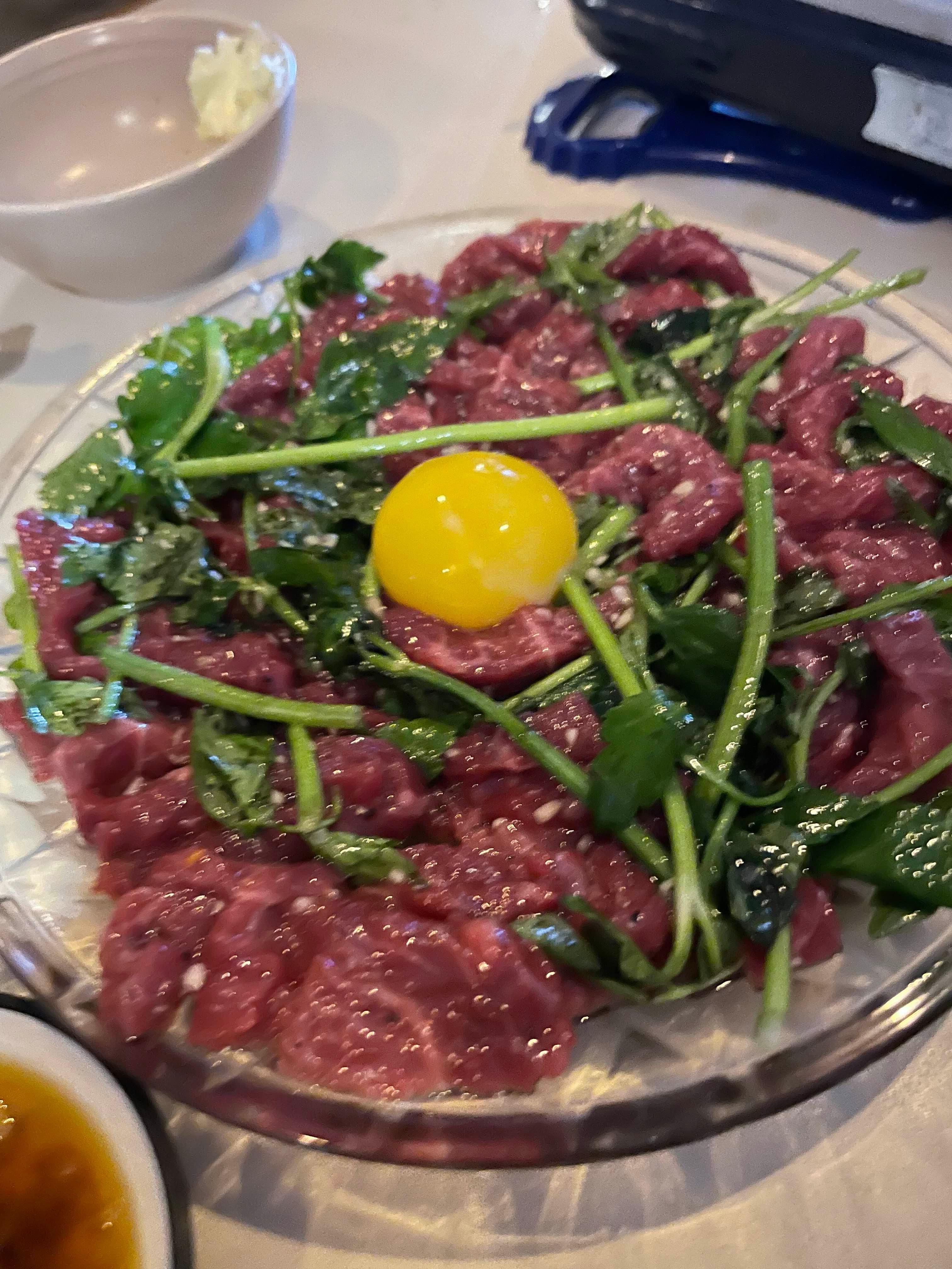 사시미는 선도 확실하고, 미나리육회는 진짜 밸런스 잘 잡혔어요.